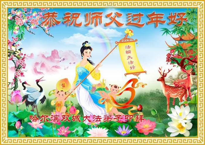 黑龙江省哈尔滨市全体大法弟子恭祝慈悲伟大的师尊过年好!