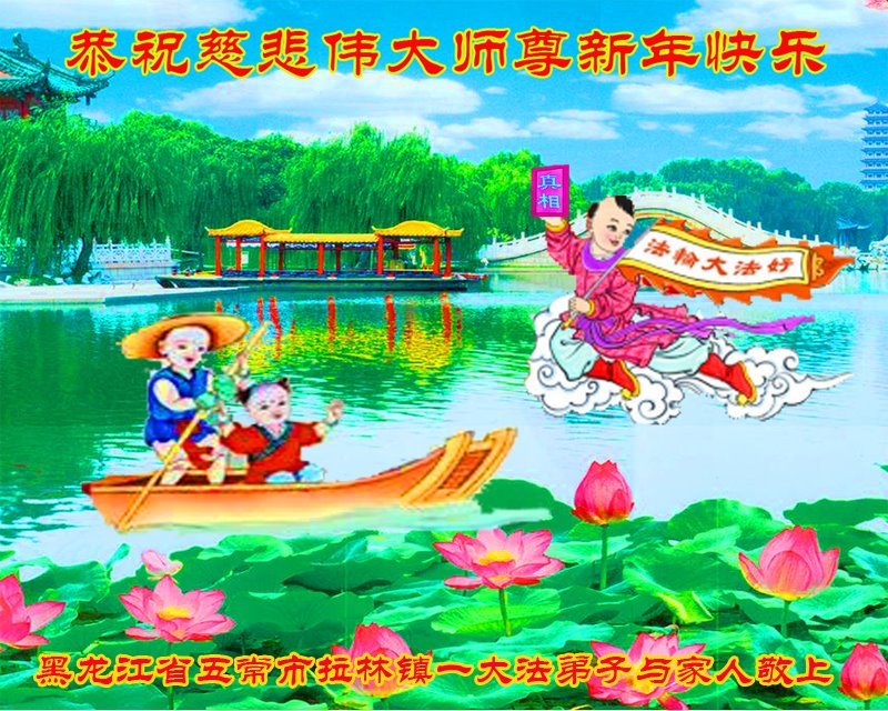 黑龙江省哈尔滨市五常市拉林镇一大法弟子敬上 黑龙江省哈尔滨市五常市拉林镇一大法弟子与家人恭祝师尊新年快乐!