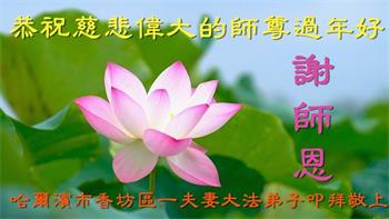 黑龙江哈尔滨学法小组大法弟子恭祝师尊过年快乐! 黑龙江哈尔滨道里区大法弟子恭祝师尊过年快乐!