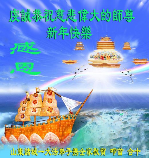 是师尊对弟子的慈悲保护,才使弟子能够走到今天,弟子每一步的提高,都离不开师尊的承受!每当弟子遇到魔难时,就想到师父就在弟子身边,看护着弟子,心里就踏实多了,魔难很快就会过去了!弟子每一次过关都是这样,师尊的佛恩浩荡,弟子永远都无法回报!弟子唯有谨遵师父的慈悲教诲,多学法,与其他的同修互相配合,互相圆容,共同做好三件事,让更多的世人明白真相,看清中共邪*党-的魔鬼面目,脱离邪*党-,从而能够進入美好的未来! 弟子跪谢师尊救度洪恩!合十! 山东潍坊大法弟子恭祝师尊新年好!