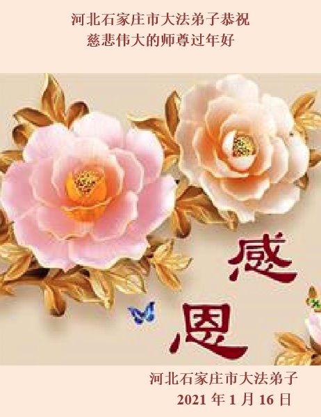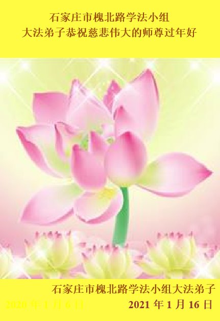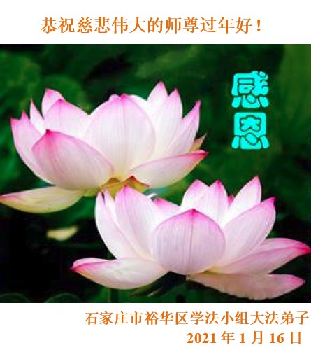 【明慧网二零二一年二月十二日】 河北省石家庄市一学法小组全体大法弟子恭祝慈悲伟大的师尊新年快乐!