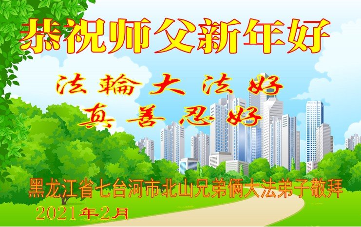 【明慧网二零二一年二月十二日】 黑龙江省牡丹江市桥北一大法弟子恭祝师尊过年好!