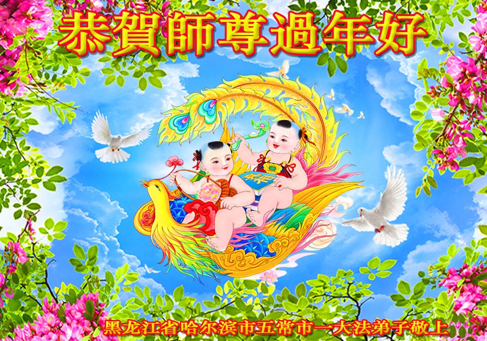 黑龙江省哈尔滨市五常市一大法弟子恭祝师尊过年好!