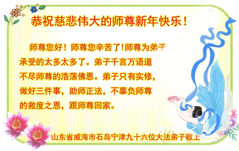山东省威海市石岛大法弟子恭祝慈悲伟大的师尊新年快乐!