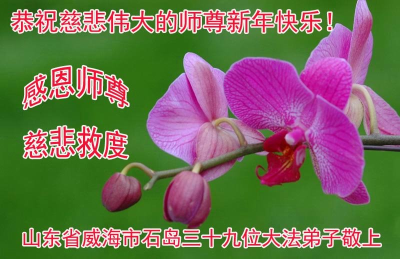 山东省威海市石岛三位大法弟子恭祝慈悲伟大的师尊新年快乐!