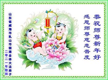 山东省威海市乳山市银滩开发区全体大法弟子恭祝师尊新年快乐!