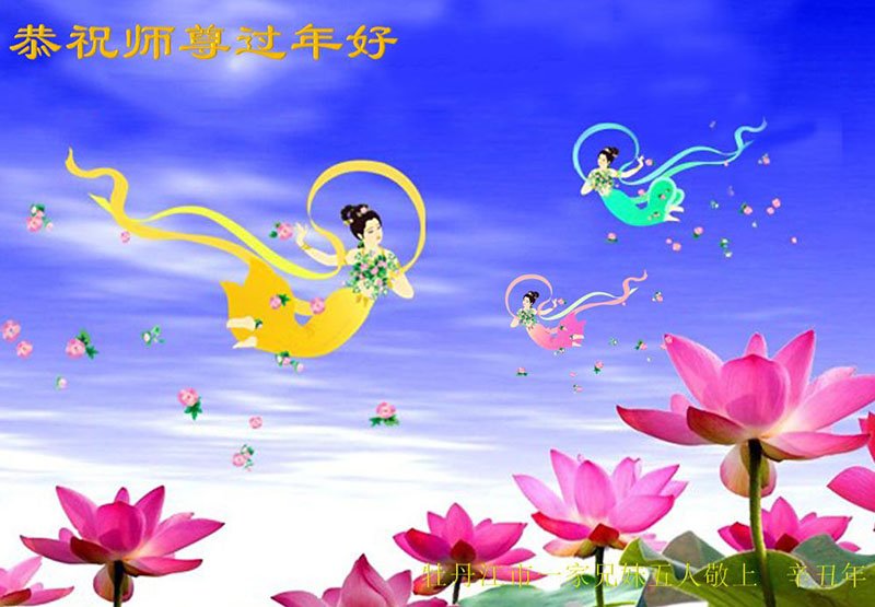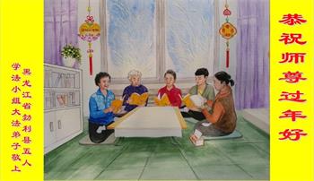 【明慧网二零二一年二月十二日】 黑龙江省牡丹江市大法弟子兄妹五人恭祝师尊过年好!