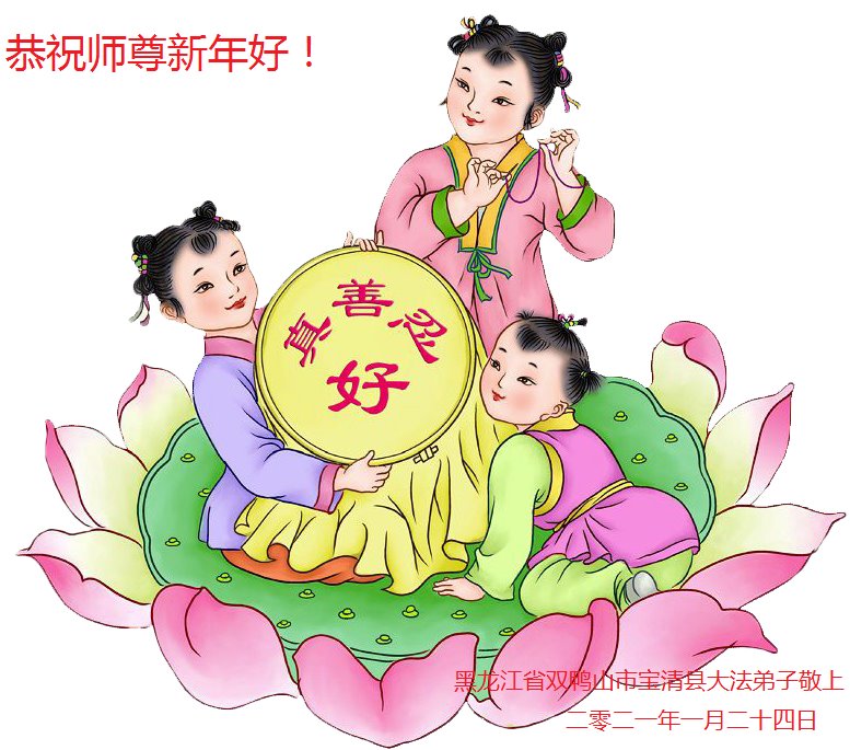 新的一年宝清县全体大法弟子更精進。 黑龙江双鸭山市宝清县全体大法弟子敬上 二零二一年一月二十四日 黑龙江省牡丹江市大法弟子恭祝师尊新年好!