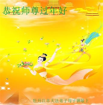 黑龙江省牡丹江市大法弟子母子俩恭祝师尊过年好!