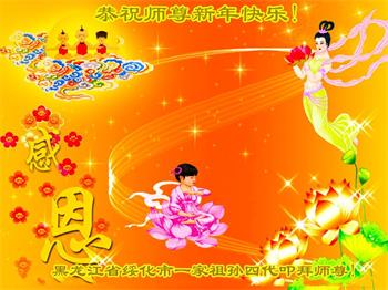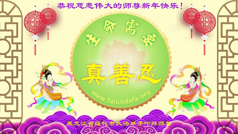 恭祝师尊新年快乐! 谢师恩 一部天书 转法轮 宇宙大法 度世人 博大精深 开智慧 宇宙特性 真善忍 末后之际 摆位置 坚信大法 除邪灵 世人都说 大法好 佛法传度 有缘人 一部大法 世间传 众生得救 上法船 助师正法 救世人 同化大法 即是神 翘首遥望 海对面 顶礼叩拜 谢师恩 宇宙更新 乾坤正 渡船起航 随师还 黑龙江省牡丹江市阳明区俩大法弟子恭祝师父新年快乐!