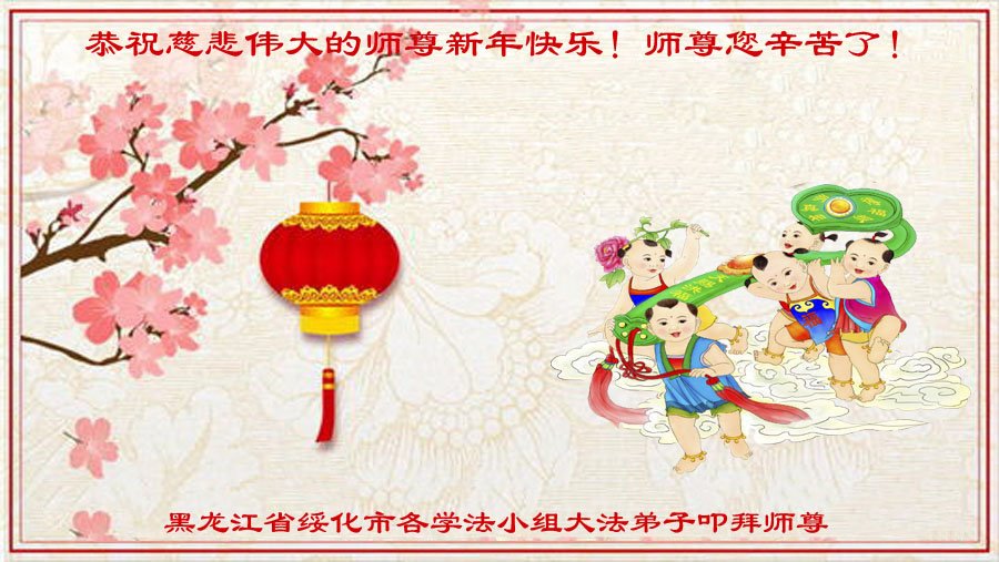 黑龙江省勃利县五人学法小组大法弟子问候师尊:恭祝师尊过年好! 黑龙江省勃利县五人学法小组大法弟子敬上 黑龙江省七台河市勃利县一夫妻大法弟子恭祝师尊新年好!