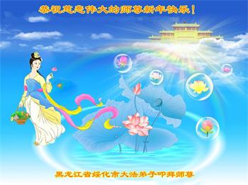 黑龙江省勃利县夫妻俩大法弟子问候师尊:恭祝师尊新年好! 师尊您辛苦了! 黑龙江省勃利县夫妻俩大法弟子敬上 黑龙江省加格达奇大法弟子恭祝师尊新年快乐!
