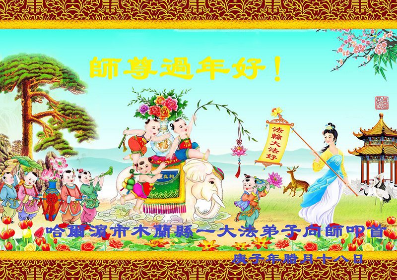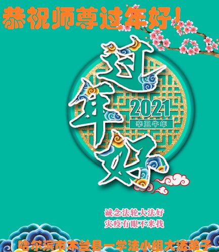【明慧网二零二一年二月十二日】 黑龙江省哈尔滨市木兰县一学法小组大法弟子恭祝慈悲伟大的师尊过年好!