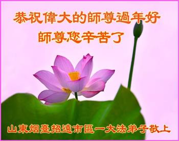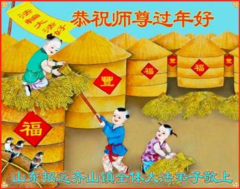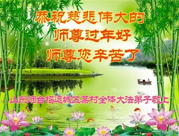 山东省烟台市招远市阜山镇四个村的大法弟子恭祝慈悲伟大的师尊新年快乐!