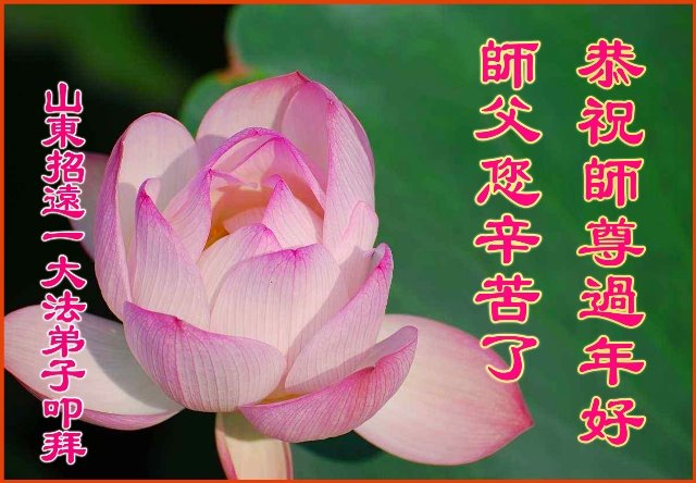 感恩师父将弟子从地狱捞起洗净,一路保护走到今天。弟子尽力做好三件事,去除一切人的执着,和学法小组的同修们共同精進,走好最后的路,跟师父回家。弟子叩拜师尊! 山东烟台招远一大法弟子恭祝慈悲伟大的师父过年好!