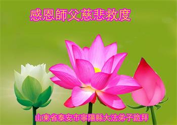 在这红尘末世,是伟大的师尊把弟子从地狱中捞起洗净,同时又给予了弟子无比珍贵的一切!师尊的佛恩浩荡,弟子倾尽所有也报答不了万一!在宇宙正法的最后时刻,弟子一定会用实际行动证实大法的美好,让那些被邪*党-毒害的生命从中共邪*党-的魔爪中解脱出来,能够有一个美好的未来! 弟子跪谢师尊救度洪恩!合十! 山东省泰安市肥城市汶阳镇大法弟子恭祝师尊新年快乐!