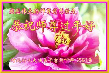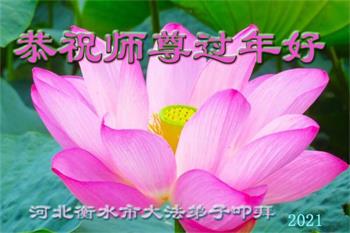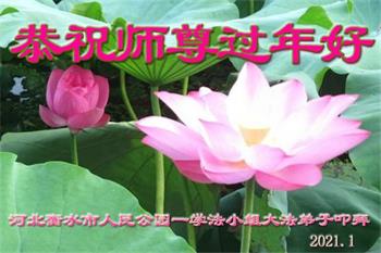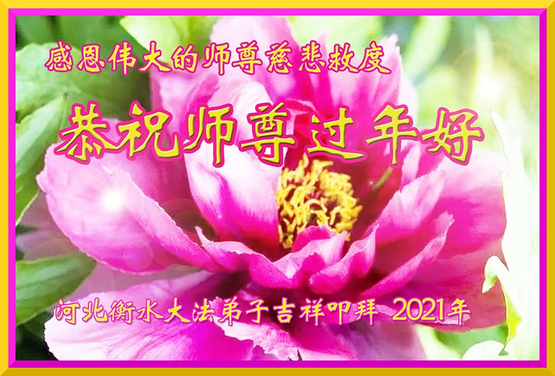 【明慧网二零二一年二月十二日】 河北省沧州市泊头市一学法小组大法弟子恭祝慈悲伟大的师尊新年快乐!感恩师尊的慈悲救度!