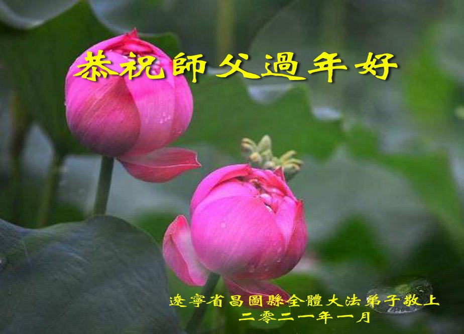 师父过年好,感谢师父的慈悲救度,辽宁省昌图县全体大法弟子叩拜师父。 辽宁省辽阳一大法弟子恭祝师父新年好!新年快乐!师父您辛苦了!