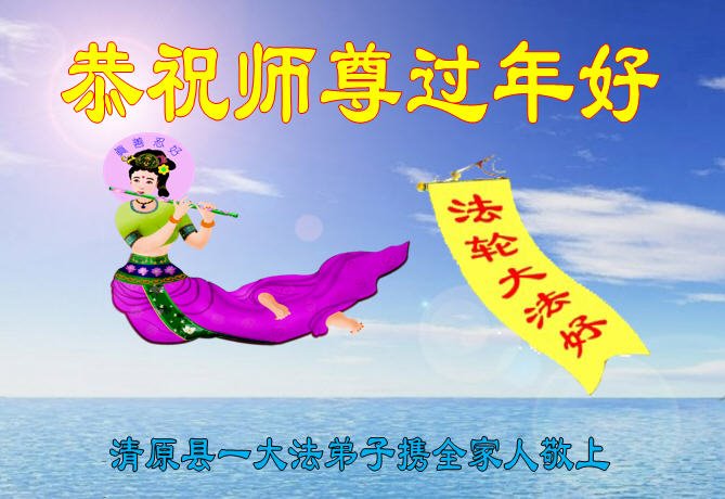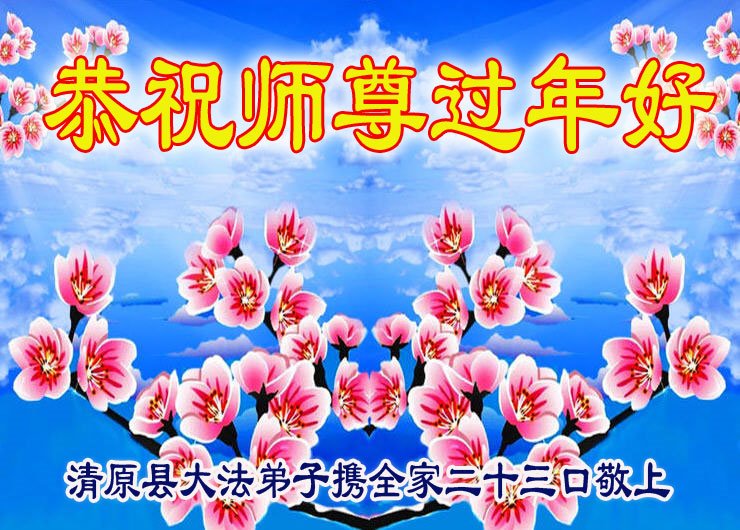 【明慧网二零二一年二月十二日】 辽宁省抚顺市清原县一大法弟子携全家恭祝师尊过年好!