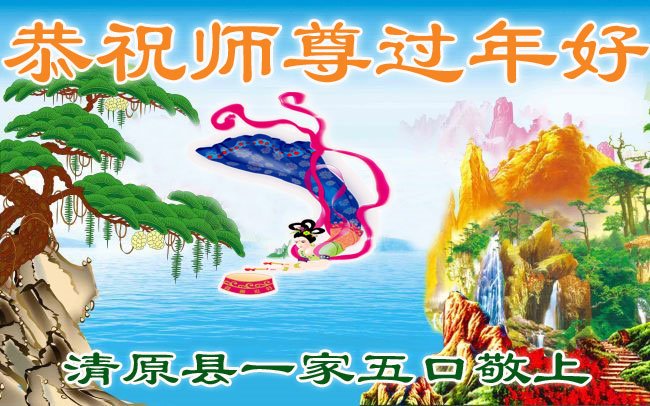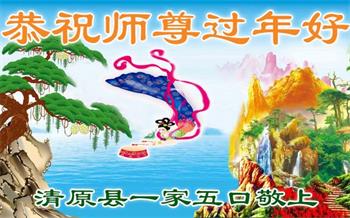 辽宁省抚顺市清原县大法弟子携全家五口恭祝师尊过年好!