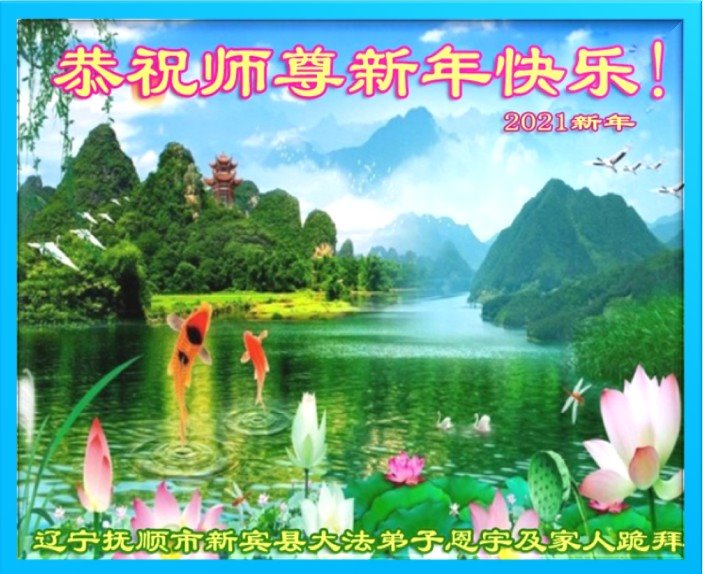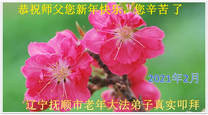 【明慧网二零二一年二月十二日】 辽宁抚顺市新宾县一大法弟子及家人恭祝慈悲伟大的师尊新年快乐!