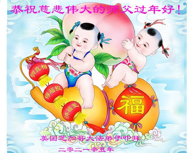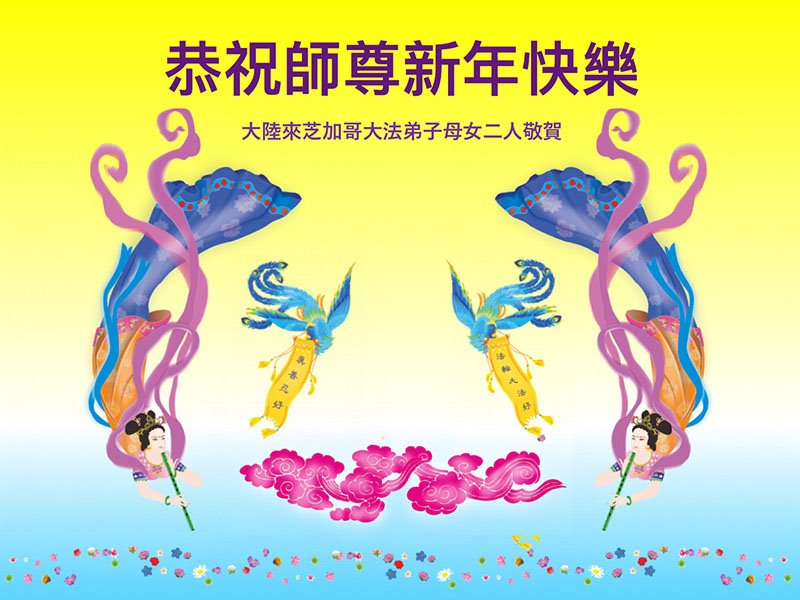 恭祝慈悲伟大的师父中国新年好! 谢谢师父的洪恩浩荡,弟子没有言语可以表达,您赐给我的这万古机缘,弟子会知道珍惜的。 祝师父过年好! 弟子敬叩 芝加哥大法弟子母女二人恭祝师尊新年快乐!