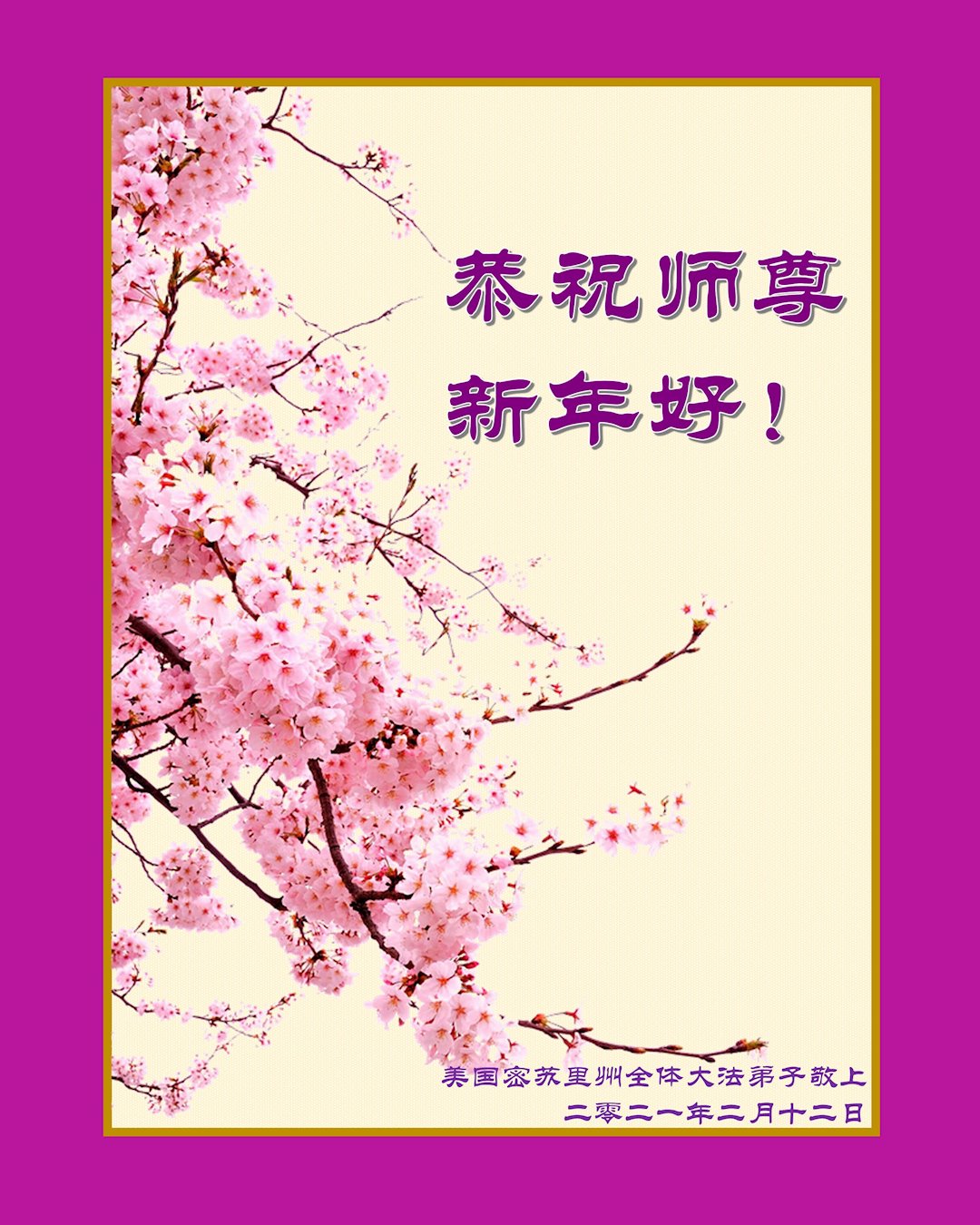 【明慧网二零二一年二月十二日】 美国大芝加哥地区全体大法弟子恭祝师尊过年好!