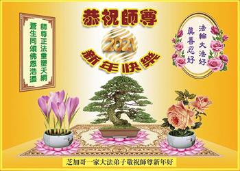 弟子时时感到师父的慈悲救度!弟子的感恩无以言表,唯有真修、实修,同化大法,努力做好三件事。 芝加哥一家大法弟子敬祝师尊辛丑年新年好!