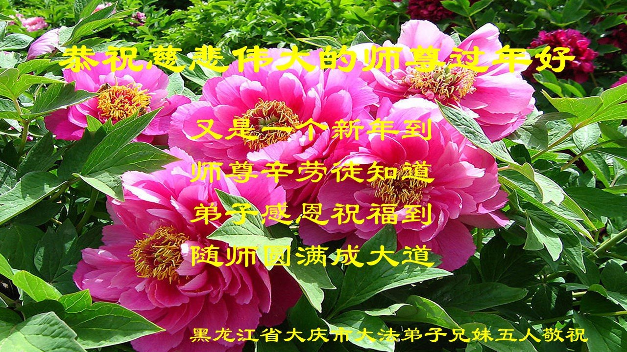 黑龙江省大庆市大法弟子兄妹五人敬祝师尊过年好!
