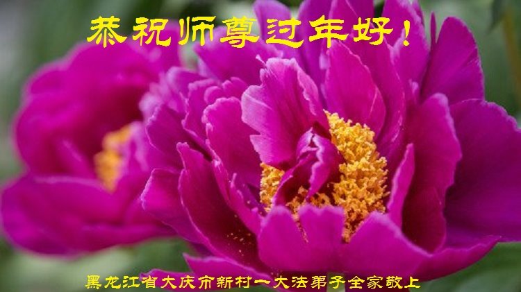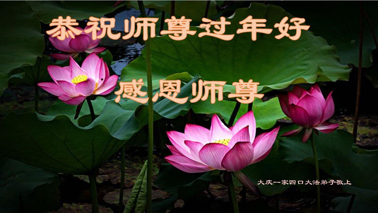 恭祝师尊过年好! 黑龙江省大庆市新村大法弟子全家敬上 黑龙江省大庆市让胡路区新潮大法弟子恭祝慈悲伟大的师尊新年快乐!
