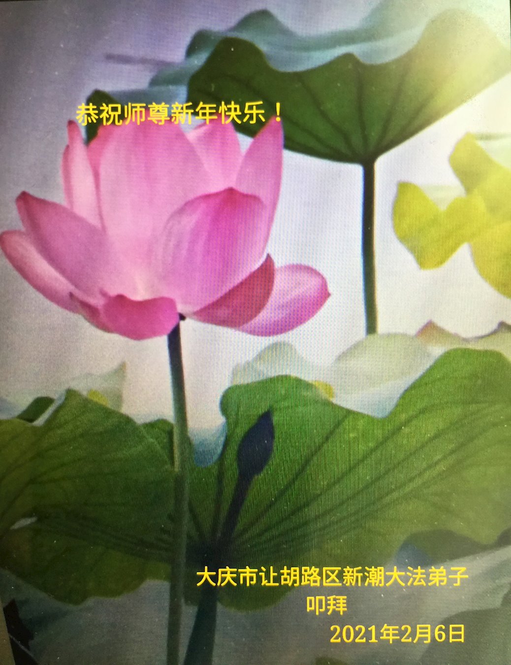 法轮大法好!真善忍好! 黑龙江省大庆林源镇全体大法弟子敬上 2021年2月6日 大庆市一地区全体大法弟子恭祝慈悲伟大的师尊新年好!弟子叩拜师尊!