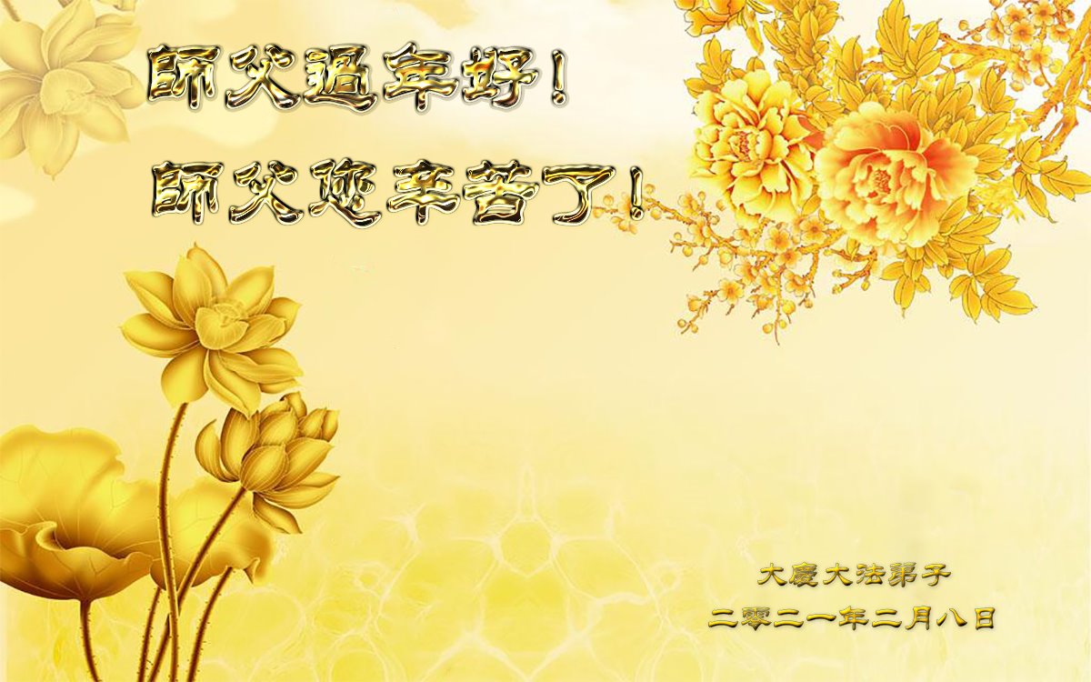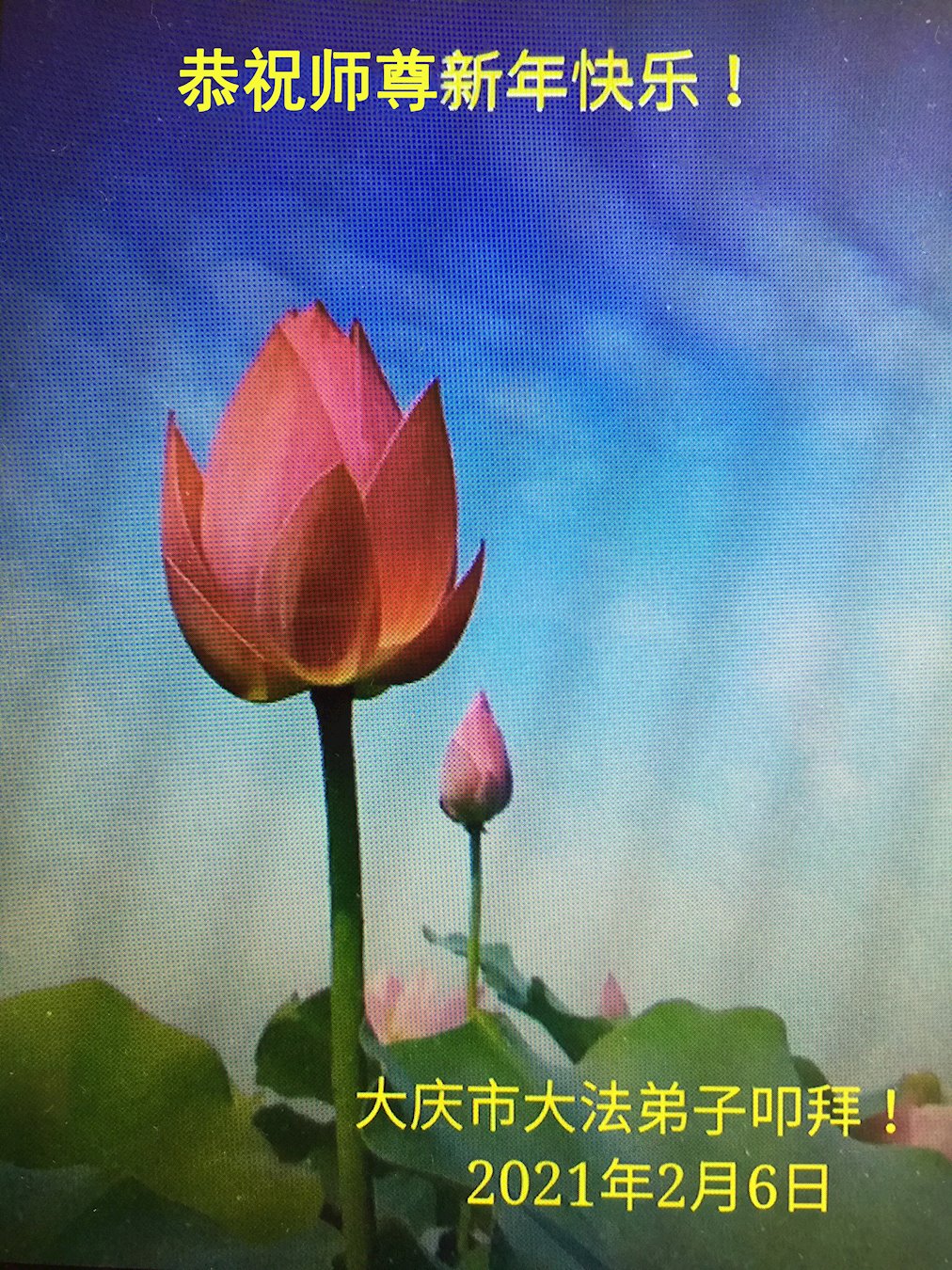 恭祝师尊新年快乐! 大庆萨尔图区大法弟子叩拜 二零二一年二月七日 黑龙江省大庆大法弟子一家恭祝师尊新年好!