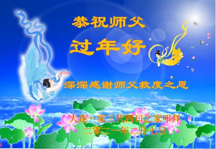 师尊过年好!谢谢师尊慈悲救度!师尊辛苦了! 辽宁省大连市甘井子一大法弟子恭祝师尊过年好!
