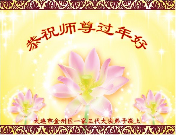 我代表全家恭祝师尊过年好!师尊辛苦了!感恩师尊的慈悲救度,叩谢师恩! 辽宁省大连市金州姐妹大法弟子恭祝师尊新年好!