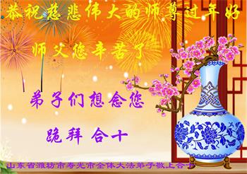 山东省潍坊市大法弟子恭祝慈悲伟大的师尊过年快乐!