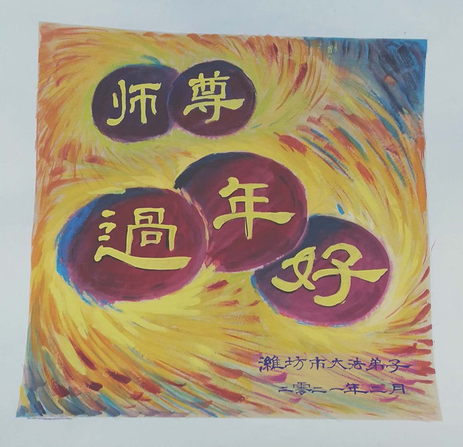 恭祝师父过年好!师父辛苦了!弟子对师父的感恩千言万语无法表达,唯有精進报师恩。 潍坊市大法弟子叩拜 二零二一年二月八号 山东省潍坊市经济开发区一学法小组全体大法弟子恭祝慈悲伟大的师尊过年好!