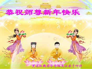 黑龙江鹤岗市一家大法弟子恭祝师父新年快乐!