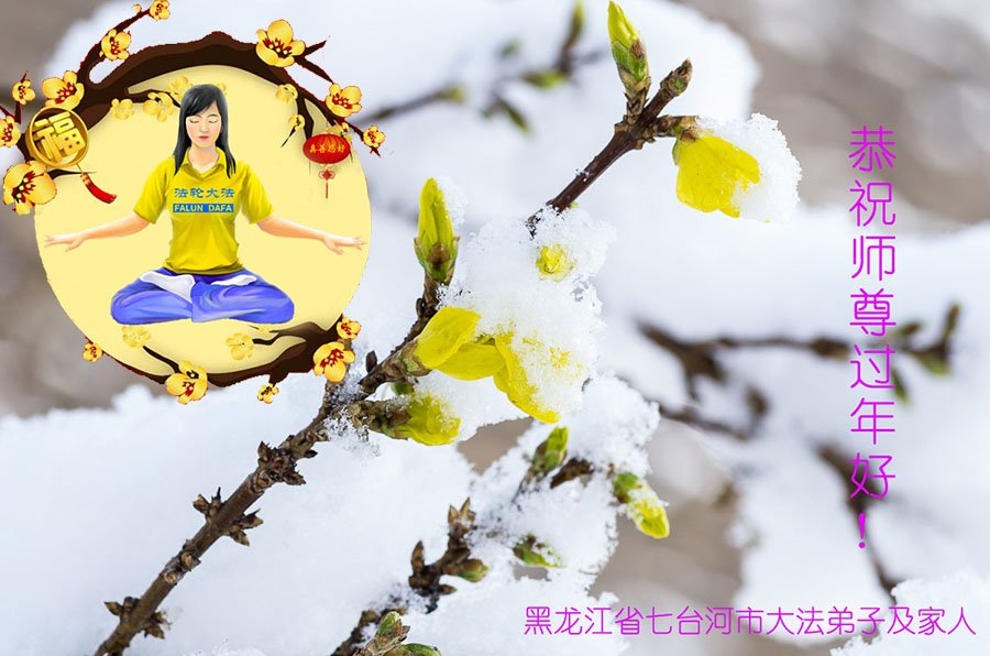 黑龙江省七台河市大法弟子及家人恭祝师尊过年好!