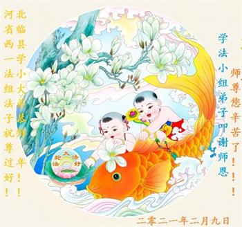 在新的一年里,弟子要勇猛精進,修好自己,多学法,多去人心,多救人,修的执着无一漏,做好三件事,圆满随师还! 河北省邢台市一大法弟子及全家恭祝师父过年好! 2021年2月9日 河北省邢台市一大法弟子及全家恭祝师父过年好!