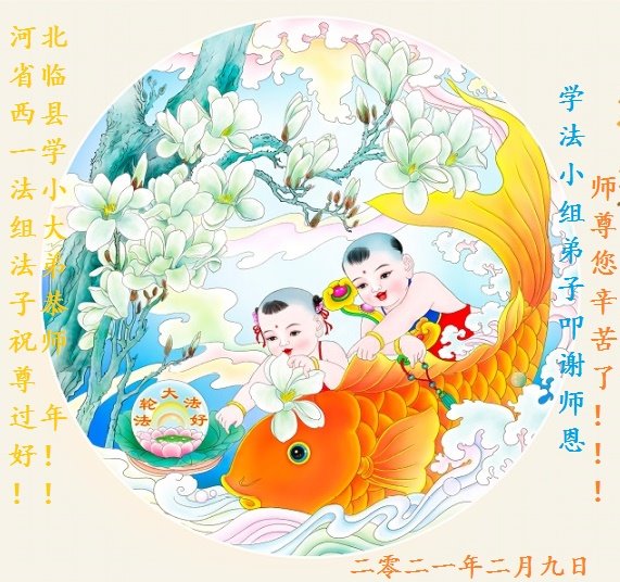在这纷乱复杂的社会里,师尊慈悲每一位生命,佛法展现了无限的智慧与法力来救度世上的人们,在此新的一年即将到来之际,弟子代临西县所有有缘得救的生命感谢师尊的慈悲救度与保护! 谢谢师尊的慈悲,师尊您辛苦了! 二零二一年二月九日 河北省邢台市临西县一学法小组大法弟子恭祝师尊过年好!