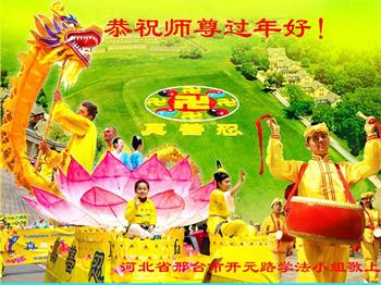 又是一年新年到,我给师尊来拜年,遥祝师尊新年好!感恩师尊慈悲度!弟子唯有精進报师恩。 河北省沧州市泊头市全体大法弟子恭祝慈悲伟大的师父新年快乐!