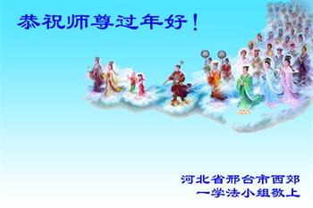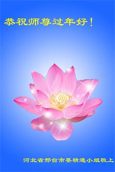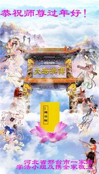 师父辛苦了!用尽世界上的语言也表达不了我对师尊的感恩,在此恭祝师父新年快乐! 河北邢台市石桥东营北全体大法弟子给师父叩首 河北省邢台市一大法弟子及全家祝师父过年好!