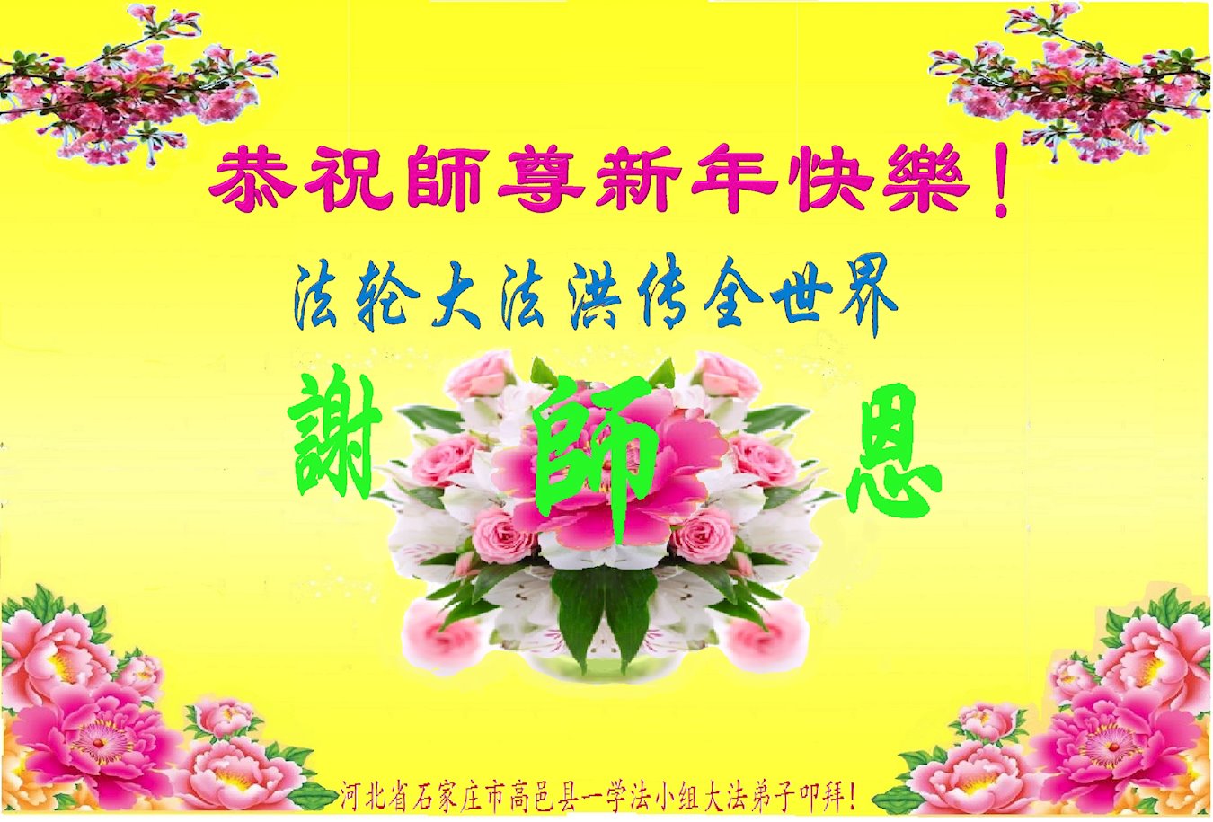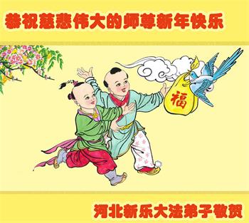 恭祝慈悲伟大的师父过年好! 石家庄市井陉县一学法小组大法弟子敬上 河北省石家庄市高邑县一全家大法弟子恭祝师尊新年快乐!