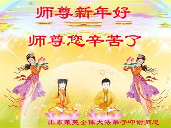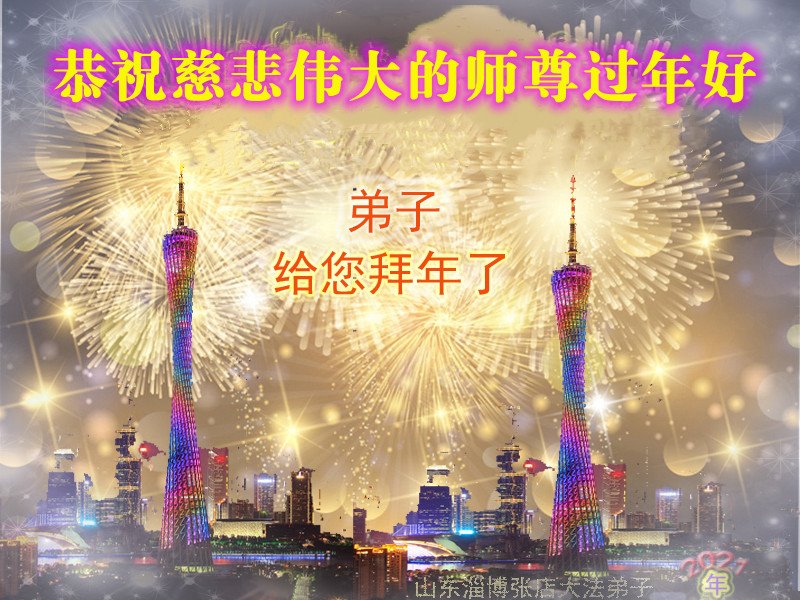 恭祝慈悲伟大的师尊过年好! 遥拜师尊,想念师尊!弟子一定听师尊的话,精進再精進,跟师尊回家! 山东省烟台市芝罘区大法弟子叩拜 山东省淄博市大法弟子恭祝师尊新年快乐!