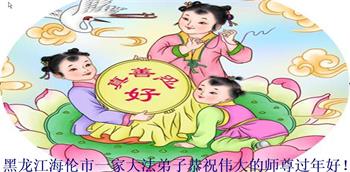 黑龙江省海伦市大法弟子恭祝伟大的师尊过年好! 黑龙江省一家四口恭祝师父新年好!