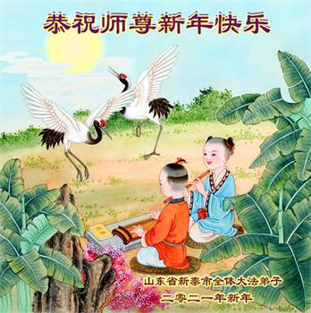 山东省淄博市一大法弟子及家人恭祝师尊过年好!