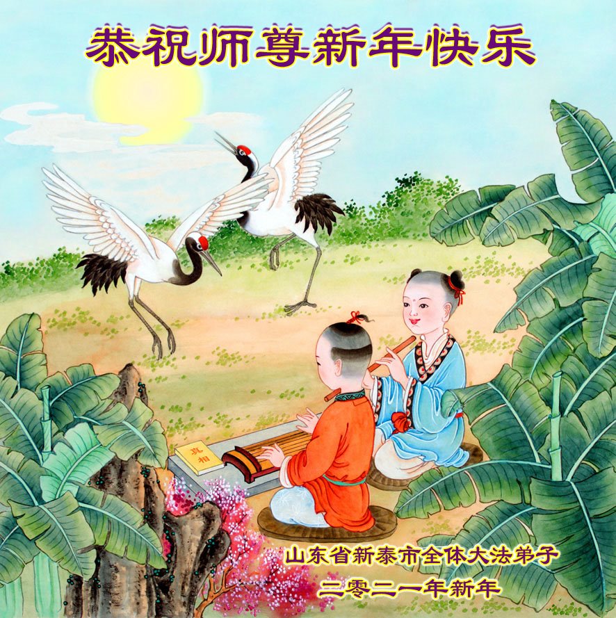 恭祝师尊新年好! 我们要听师父的话,学好法,修好自己,才能多救众生。 山东省泰安市新泰学法小组大法弟子恭祝师尊新年快乐!