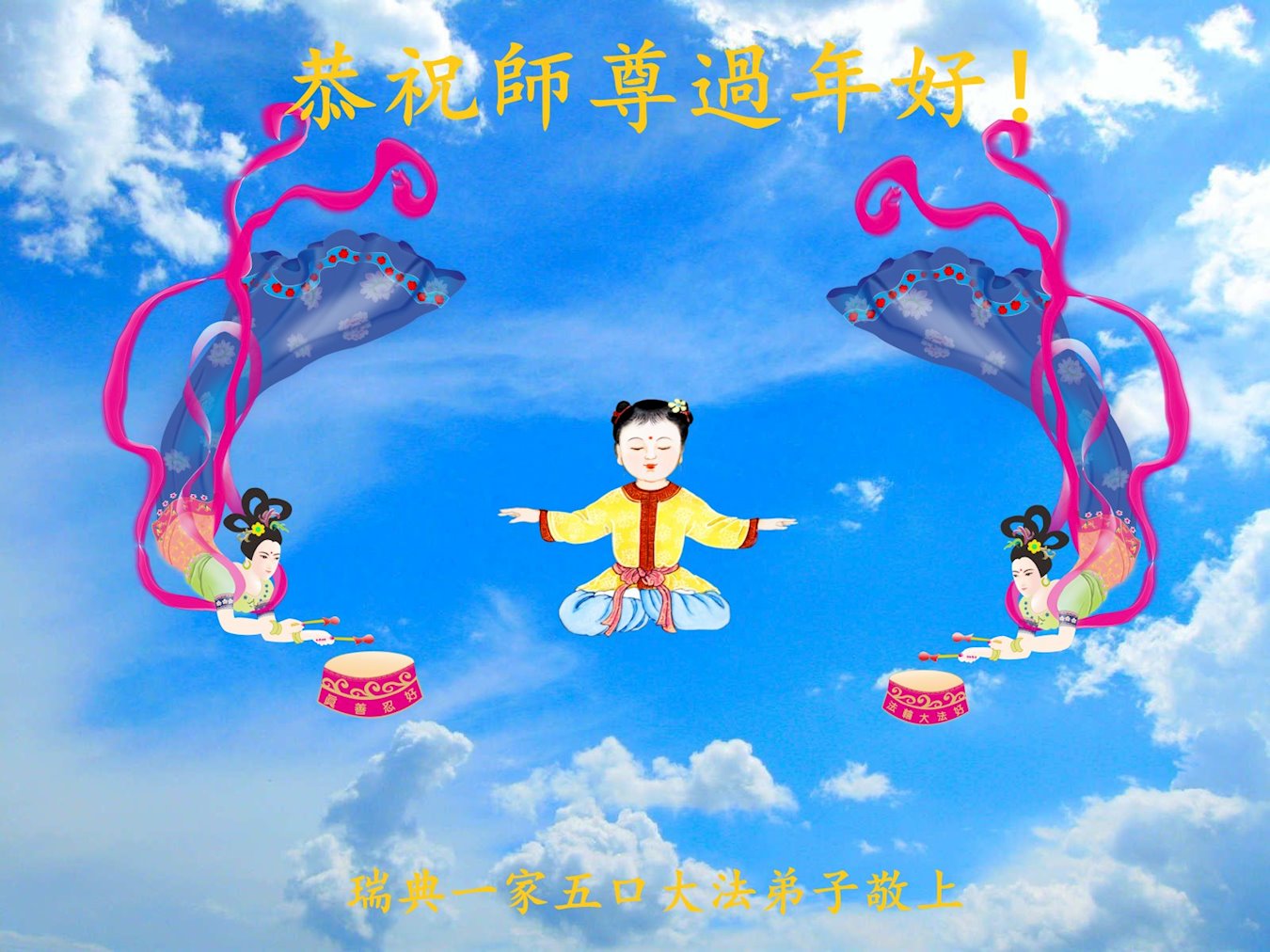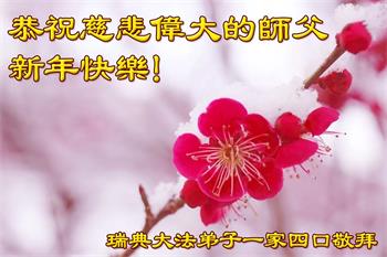 【明慧网二零二一年二月十二日】 瑞典大法弟子一家四口恭祝慈悲伟大的师父新年快乐!