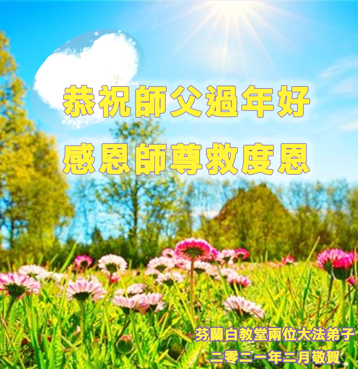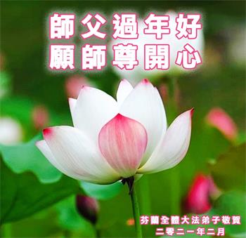 芬兰两位大法弟子敬贺和叩谢恩师! 二零二一年二月 芬兰大法弟子全家恭祝慈悲伟大的师尊过年好!