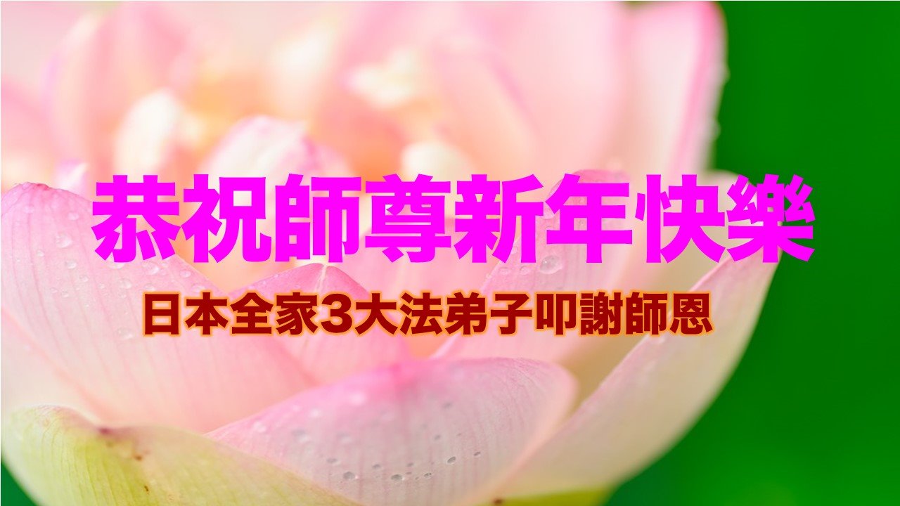 日本四名大法弟子恭祝师父过年好!师父辛苦了! 我们一定精進不怠,不辜负师父的慈悲救度! 旅居日本的大法弟子恭祝慈悲伟大的师父新年快乐!